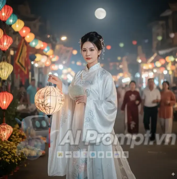 Prompt này là một yêu cầu chi tiết và sáng tạo, mong muốn tái hiện hình ảnh Hằng Nga theo một phong cách hiện đại và có dấu ấn văn hóa Việt Nam trong dịp lễ Trung Thu. Sự kết hợp giữa yếu tố thần thoại, truyền thống và thẩm mỹ đương đại hứa hẹn sẽ tạo ra một tác phẩm mãn nhãn nếu được xử lý tốt bởi mô hình AI, đồng thời các negative prompts được sử dụng rất hiệu quả để đảm bảo chất lượng kỹ thuật.