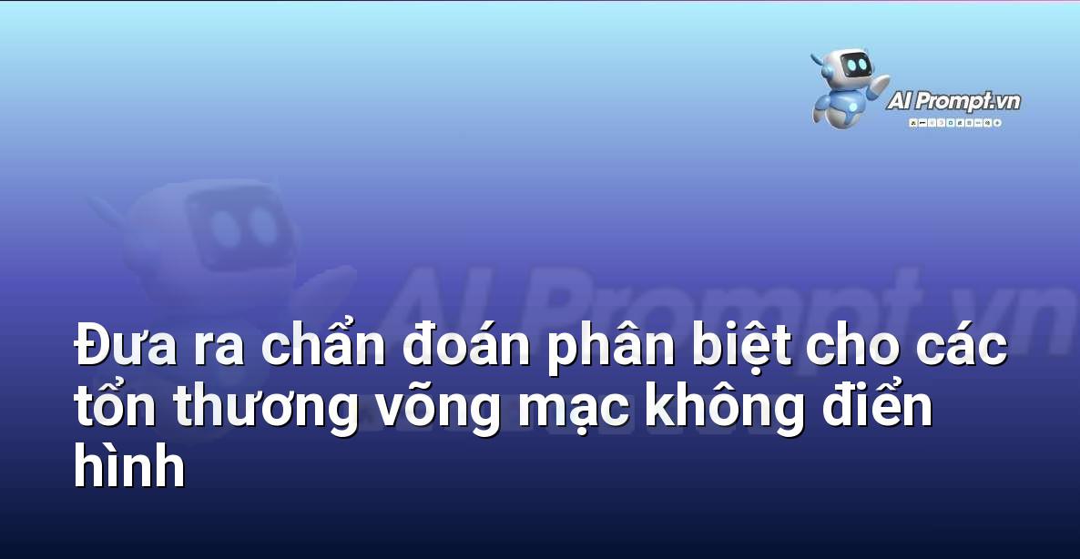 - Quy trình chẩn đoán: Phần “Xác định các bước tiếp theo” yêu cầu LLM mô phỏng một phần quy trình chẩn đoán của bác sĩ. Điều này bao gồm việc đề xuất các phương pháp cận lâm sàng (ví dụ: chụp OCT, chụp mạch huỳnh quang, siêu âm mắt, xét nghiệm máu) để xác nhận hoặc loại trừ từng chẩn đoán phân biệt đã nêu.