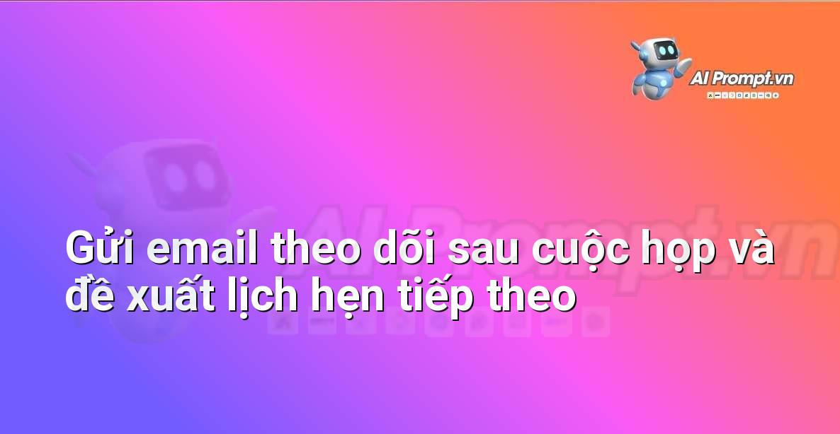 Prompt template này được thiết kế để tạo ra một email tóm tắt sau cuộc họp và đề xuất một cuộc họp tiếp theo. Nó tuân theo một cấu trúc rõ ràng, sử dụng các placeholder (biến) để cho phép cá nhân hóa nội dung.