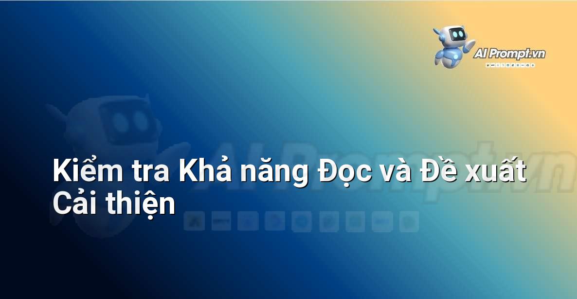 Mẫu prompt này được thiết kế để yêu cầu một chatbot thực hiện việc đánh giá và đề xuất cải tiến cho một bài viết cụ thể, tập trung vào khả năng đọc và tối ưu hóa cho công cụ tìm kiếm (SEO). Cấu trúc của prompt rõ ràng, bao gồm: