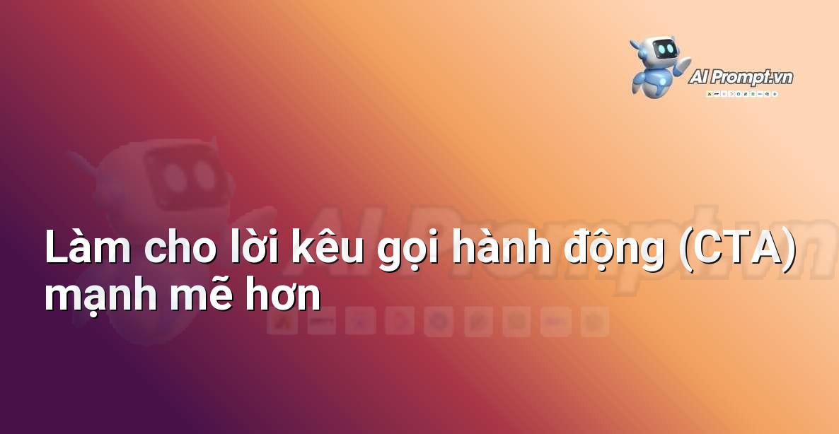 Prompt template này là một công cụ hữu ích để nâng cao chất lượng các câu kêu gọi hành động (CTA). Nó cung cấp một cấu trúc rõ ràng, định hướng người dùng cung cấp đầu vào cần thiết và yêu cầu mô hình ngôn ngữ thực hiện một tác vụ cụ thể: tái cấu trúc CTA để nó trở nên mạnh mẽ, rõ ràng, hấp dẫn và có khả năng thuyết phục cao hơn. Việc sử dụng một biến duy nhất (`[CÂU_CTA_YẾU]`) giúp prompt này dễ dàng áp dụng cho nhiều ngữ cảnh và loại CTA khác nhau.