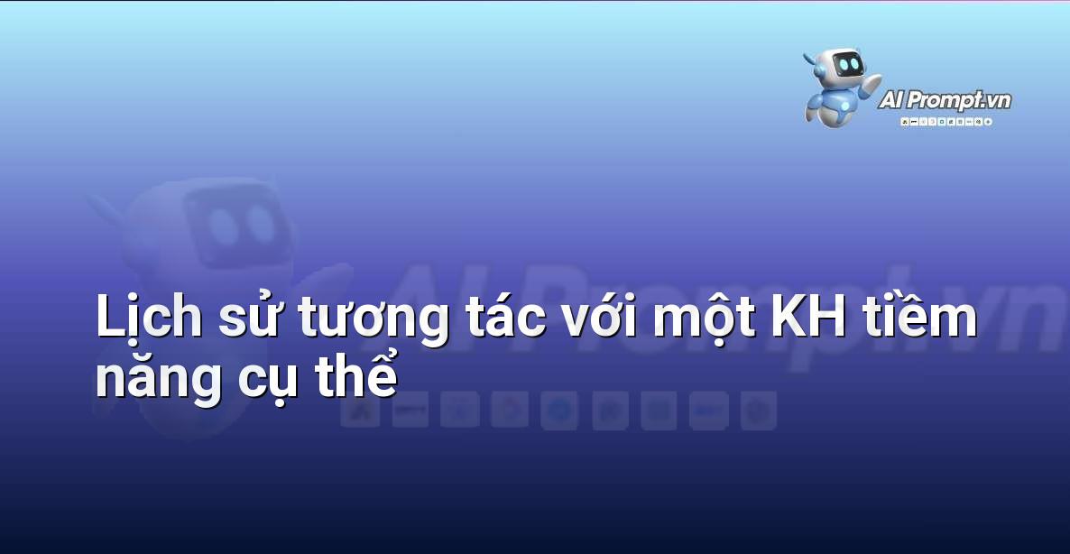 Mẫu prompt này được thiết kế để yêu cầu liệt kê một lịch sử tương tác cụ thể cho một khách hàng tiềm năng. Cấu trúc của nó rất rõ ràng và có thể xác định được các thành phần chính sau: