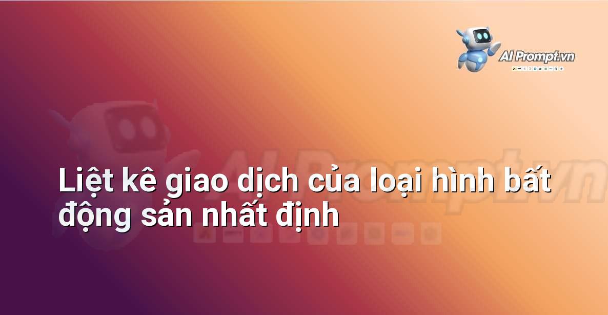 Mẫu prompt này có cấu trúc rõ ràng và linh hoạt, được thiết kế để thu thập thông tin chi tiết về các giao dịch bất động sản cụ thể. Cấu trúc này bao gồm các thành phần cố định (lời yêu cầu, loại thông tin cần xuất ra) và các biến số (các tham số được đặt trong dấu ngoặc vuông `[]`) cho phép người dùng tùy chỉnh yêu cầu của mình.