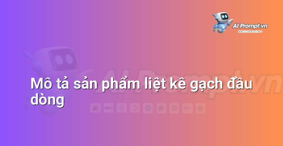 - Chỉ thị chính: “Viết mô tả sản phẩm cho [TÊN_SẢN_PHẨM] sử dụng định dạng gạch đầu dòng.” – Đây là yêu cầu cốt lõi, hướng dẫn mô hình AI về loại nội dung cần tạo (mô tả sản phẩm) và định dạng mong muốn (gạch đầu dòng).