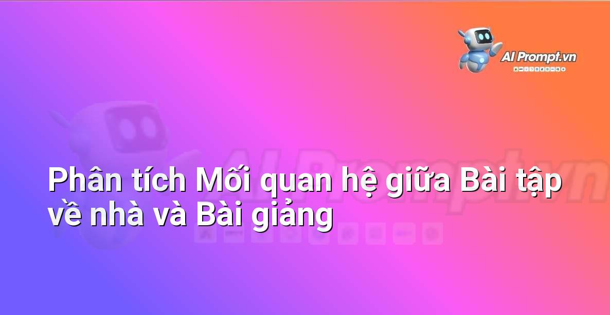 - Yêu cầu chính: “Phân tích mối quan hệ giữa bài tập về nhà [TÊN_BÀI_TẬP_VỀ_NHÀ] và nội dung được trình bày trong bài giảng [TÊN_BÀI_GIẢNG].” Đây là cốt lõi của yêu cầu, định hướng cho mô hình ngôn ngữ tập trung vào việc so sánh và liên kết hai đối tượng được xác định.