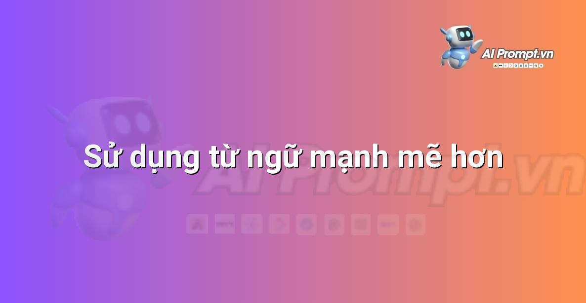 - Chỉ thị chính: “Tái cấu trúc câu/đoạn văn sau đây bằng cách thay thế các từ ngữ yếu, chung chung (ví dụ: rất, tốt, nhiều) bằng các từ mạnh mẽ, cụ thể và giàu hình ảnh hơn để tăng sức thuyết phục và biểu đạt:”