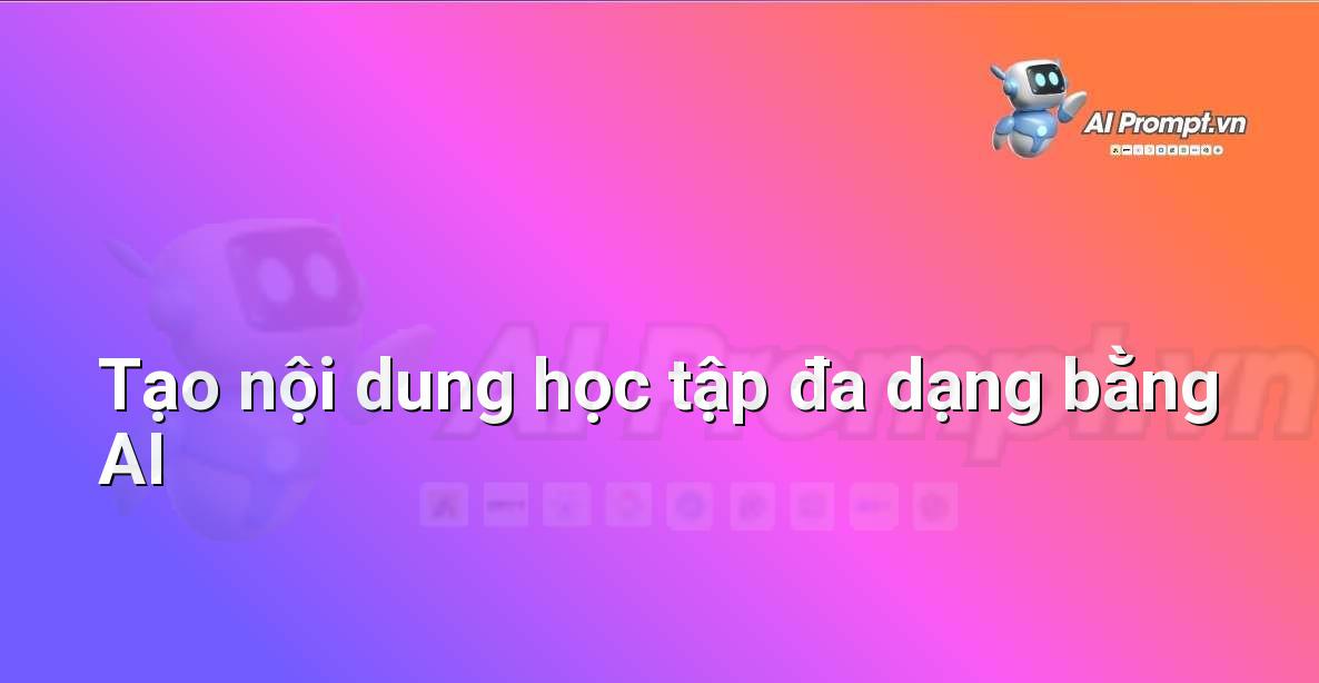 - Nhiệm vụ (Task): “Hãy đề xuất cách sử dụng AI để tự động tạo ra các biến thể của bài tập hiện có hoặc tạo ra các nội dung học tập mới hoàn toàn.” Đây là hành động cốt lõi mà AI cần thực hiện.