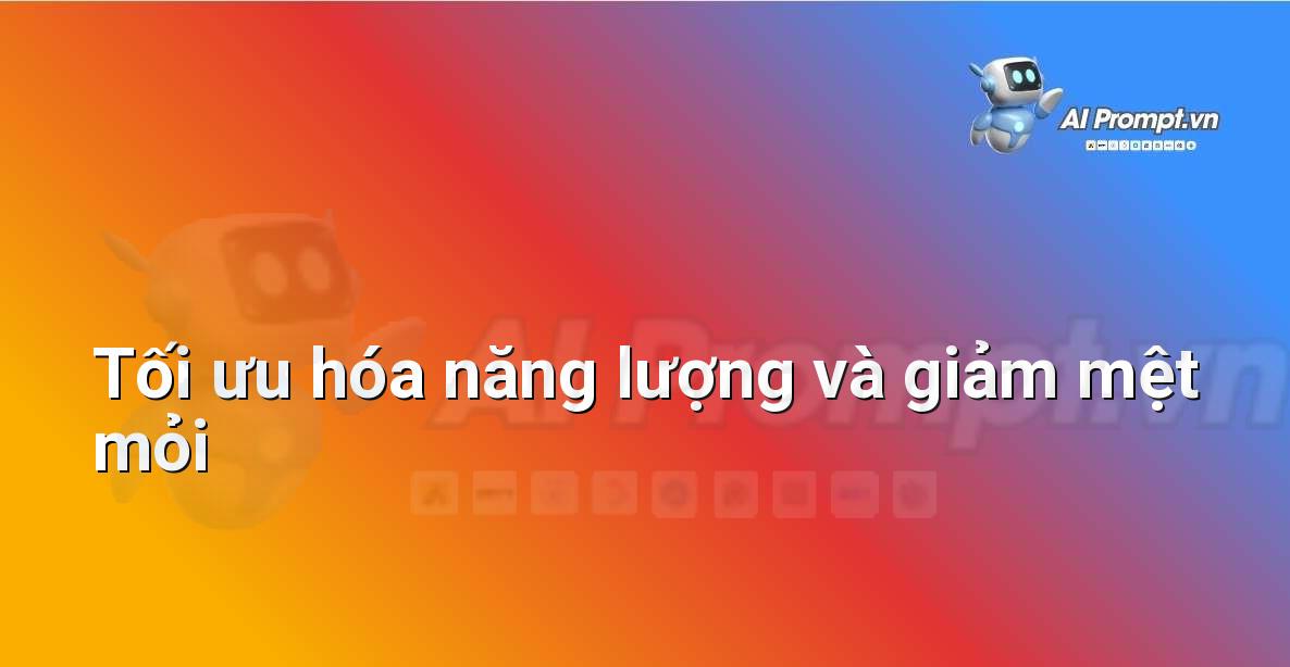 đóng vai trò là các biến số. Chúng đại diện cho các thông tin mà người dùng cần điền vào. AI sẽ sử dụng những giá trị được điền vào này để hiểu rõ hơn về bối cảnh và nhu cầu của người dùng. - Ngữ cảnh hóa (Contextualization): Bằng cách cung cấp thông tin về thời điểm mệt mỏi, chiều cao, cân nặng, tuổi tác và chế độ ăn hiện tại, người dùng đang xây dựng một ngữ cảnh chi tiết cho AI. Điều này cho phép AI đưa ra lời khuyên phù hợp hơn với sinh lý, lối sống và thói quen của người dùng, thay vì đưa ra các khuyến nghị chung chung.